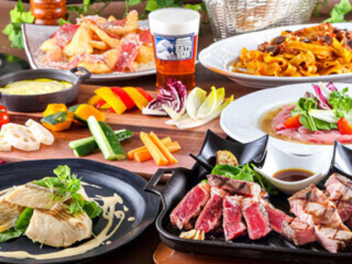 This is a very satisfying plan that starts with fresh fish carpaccio, followed by sumptuous ragu pasta, and for the main course, sautéed white fish and grilled beef sirloin & brand-name pork steaks for comparison! The plan also includes all-you-can-drink, featuring three kinds of draft beer, including world premium beers, and a selection of 35 wines.