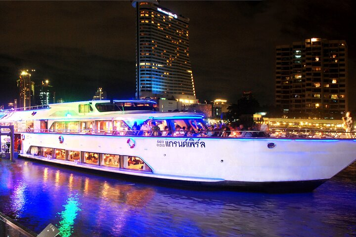 In the evening, see the city from the Chao Phraya River. Board your dinner cruise and enjoy views of the Wat Arun and Grand Palace, as the lights shimmer amongst Bangkok's busy skyline. Enjoy a mouth-watering Thai and International cuisine buffet, complimented with water, tea and coffee. Listen to wonderful live music and see a show-stopping classical dance show, all the whilst soaking in the panoramic views.