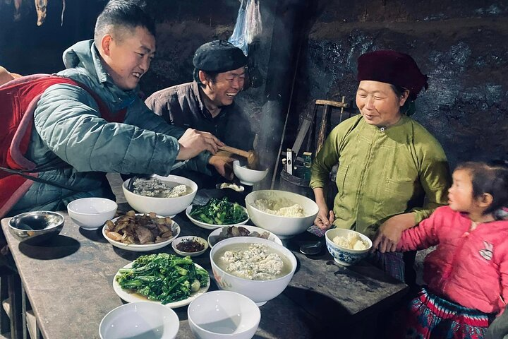 Noon: Enjoy a family meal with locals, experience unique H’Mong typical dishes such as “mèn mén”, “tẩu chúa”, dried pork upstairs kitchen,... Afternoon: Explore Lao Xa village, there you have the opportunity to experience: - Learn about life in the rocky area: You will directly see and hear the sounds of the rocky mountains and the breathing of life there. Moreover, understand the Vietnamese saying “There is no mountain higher than the knees of the Hmong” or another saying “Live on the rock, die under the rock”. From these stories, we can deeply feel the "extraordinary energy" of ethnic community there. Get to know about the traditional Hmong craft of silver carving. Evening: Take rest, culture exchange with locals, drink local tea and eat dinner with owner's family. Then we enjoy: - Listen to ethnic melodies through traditional Hmong musical instruments such as: Khèn Mong, flute, lip lute... as well as cultural and historical stories behind those tunes.
