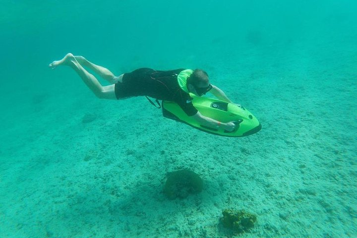 The SEABOB F5 S Jet allows you to explore extensive reef areas and the famous "Antillia" shipwreck without getting tired, covering far more ground than a routine snorkel trip. The reef areas are teeming with tropical marine life, coral growth, and excellent visibility. Viewing the Red Cushion Starfish and snorkeling with Aruba's turtles is a must-do.