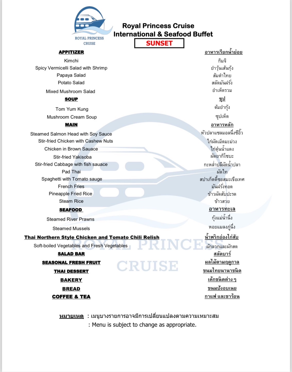 aboard the Royal Princess Cruise for a delightful evening of excellent food,